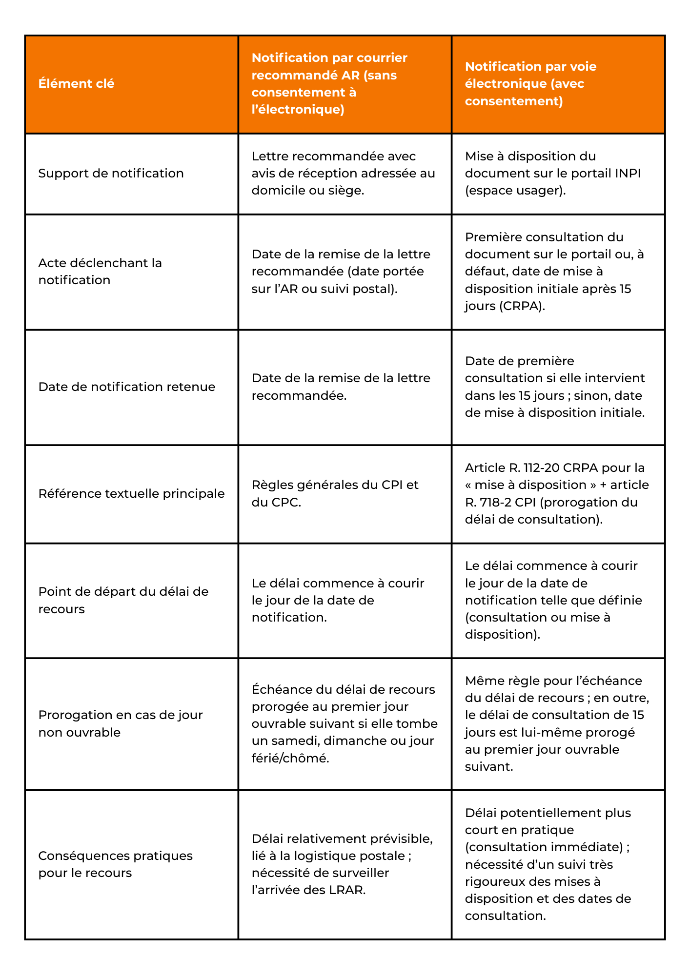 Tableau comparatif : notification postale vs électronique
